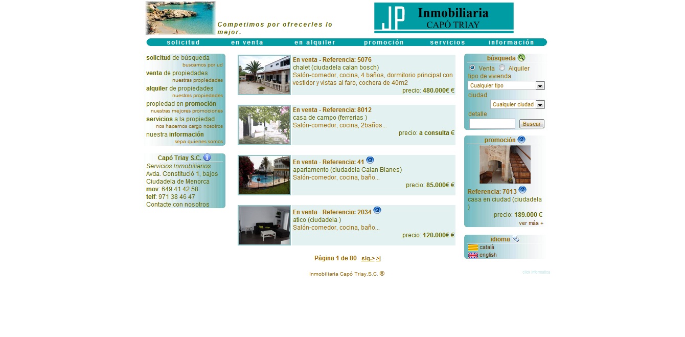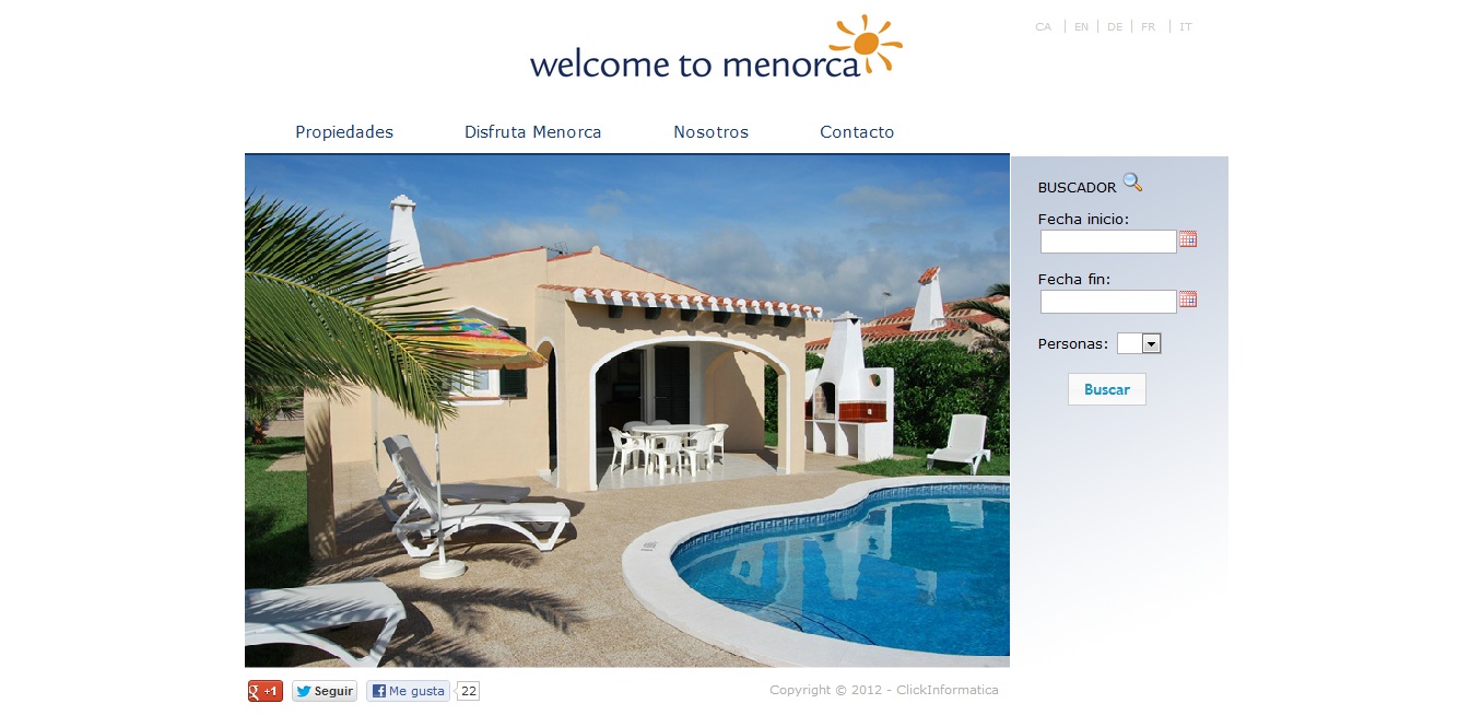 Portal web de alquiler de casas vacacionales en Menorca desarrollado el 2012. Dispone de buscador de casas a partir de las fechas que los clientes deseen disponer de ésta. Los clientes pueden escoger entre 6 idiomas para leer el contenido del portal.